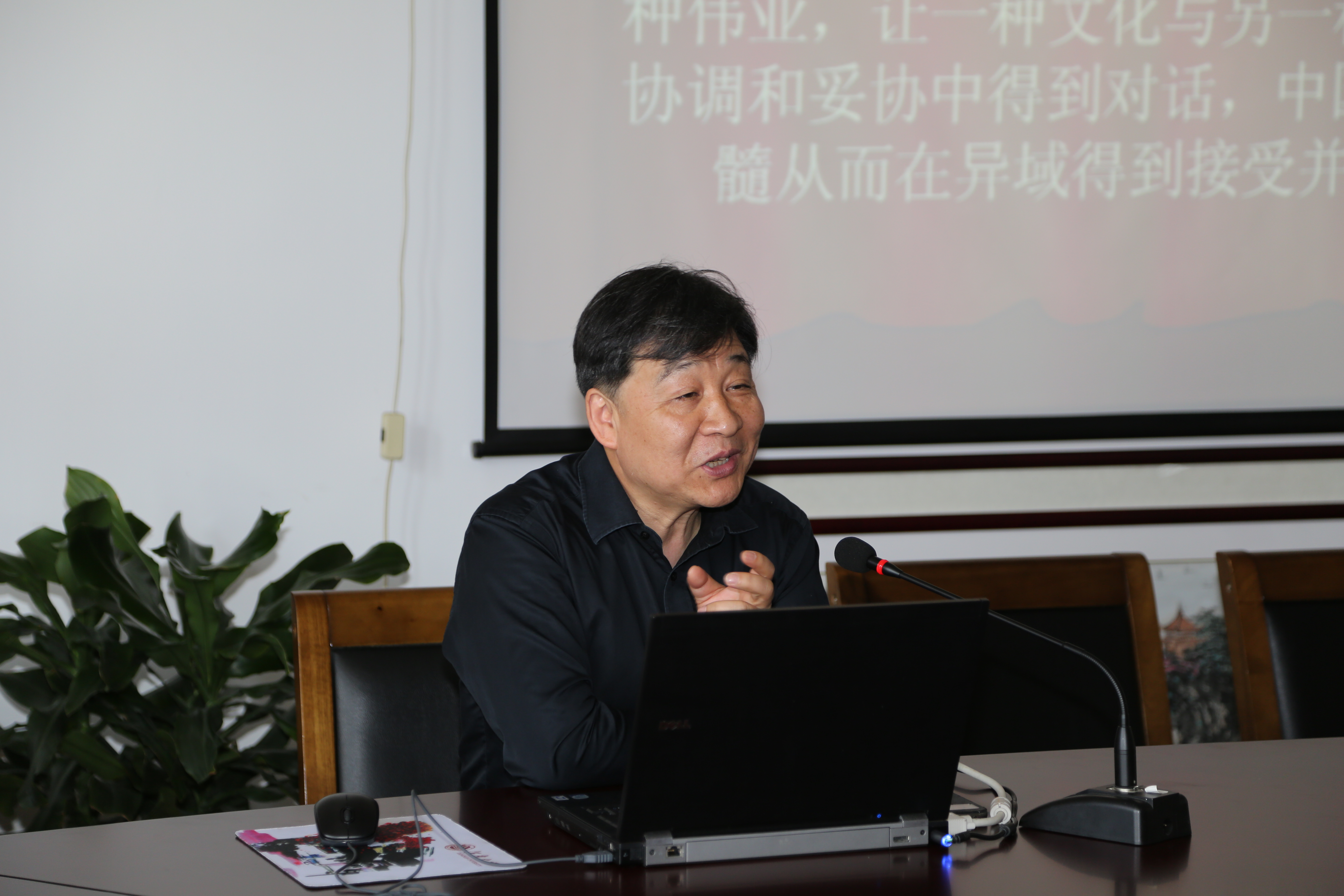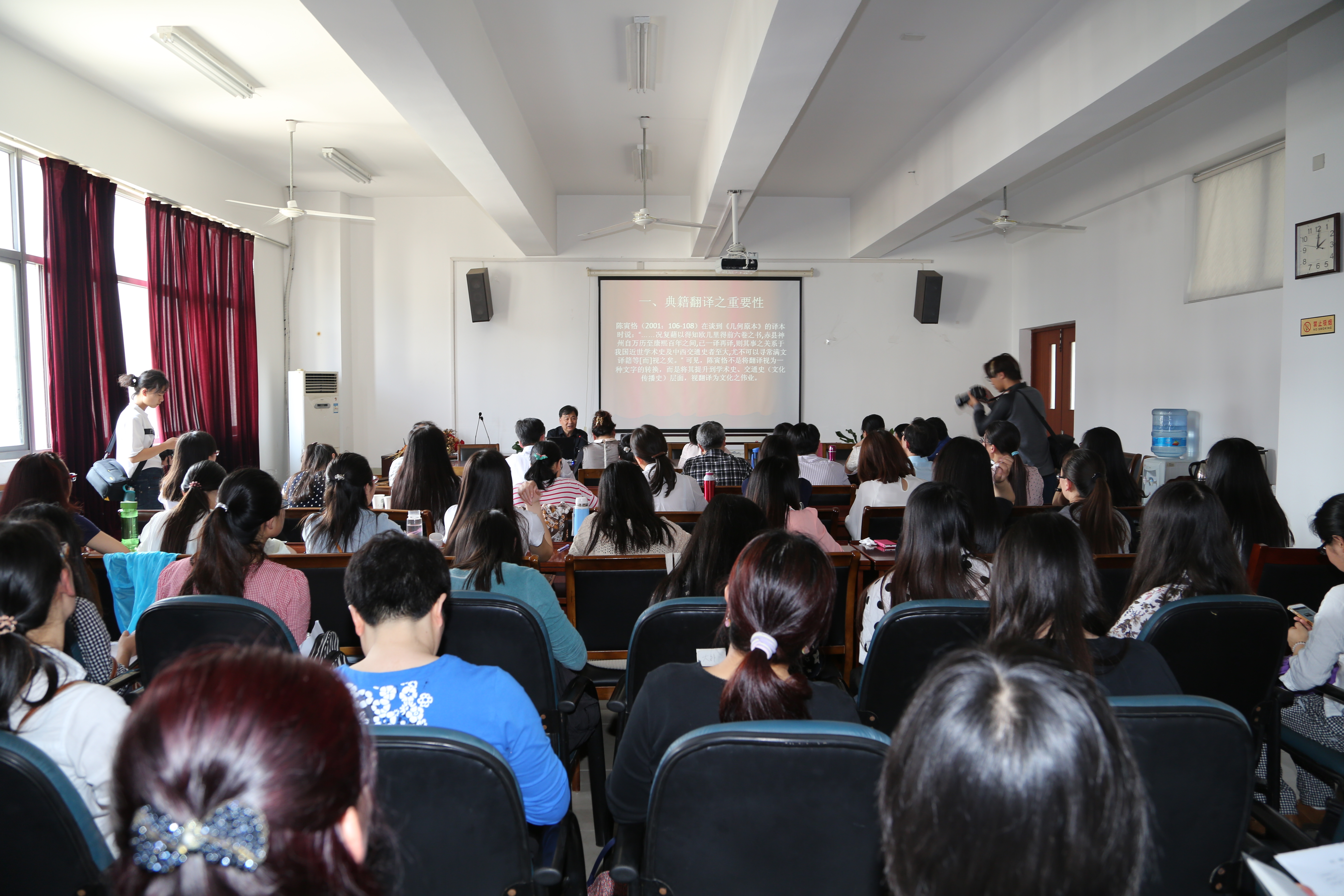 428下午,清华大学外文系罗选民教授应邀在色情网站 大会议室(A349)做了题为“文化自觉与中国经典英译”的学术讲座,讲座由翻译研究团队负责人王金安教授主持,学院领导和师生共50余人参与了本次学术活动。