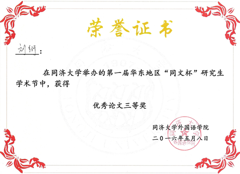 2014级硕士研究生刘衍与同济大学博士生花萌、上海外国语大学硕士研究生金言睿荣获三等奖。