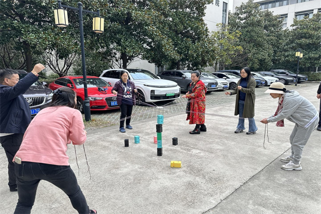 趣味运动会设置了合力建塔、投壶、纵横天下、乒乓球、珠行万里等比赛项目。参赛的老师们斗志昂扬,奋勇争先,场下观战的老师出谋划策,加油助威,欢快的气氛席卷了整个场地。