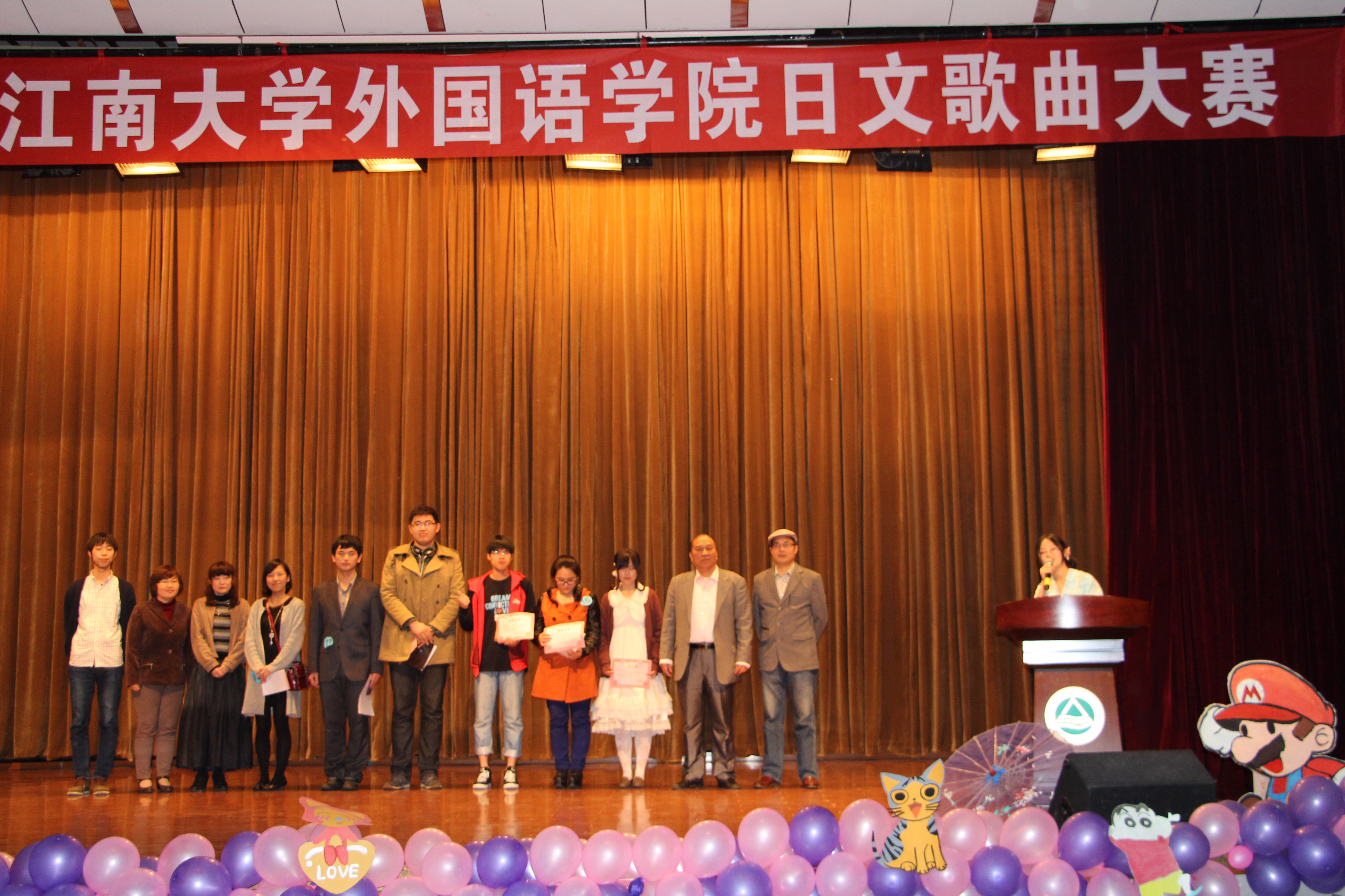极具特色的大型活动之一,旨在为全校日语爱好者提供交流与展示的平台,历年来广受全校日语爱好者的喜爱。此次比赛除外语学院的学生积极参加之外,还吸引了食品学院、设计学院、物联网工程学院、商学院以及北美学院等学院的四十余名同学参加。日语系副主任崔明姬、副教授周韬、日籍教师田村恭平、中西由美子以及赞助商出席了比赛,并担任了评委。