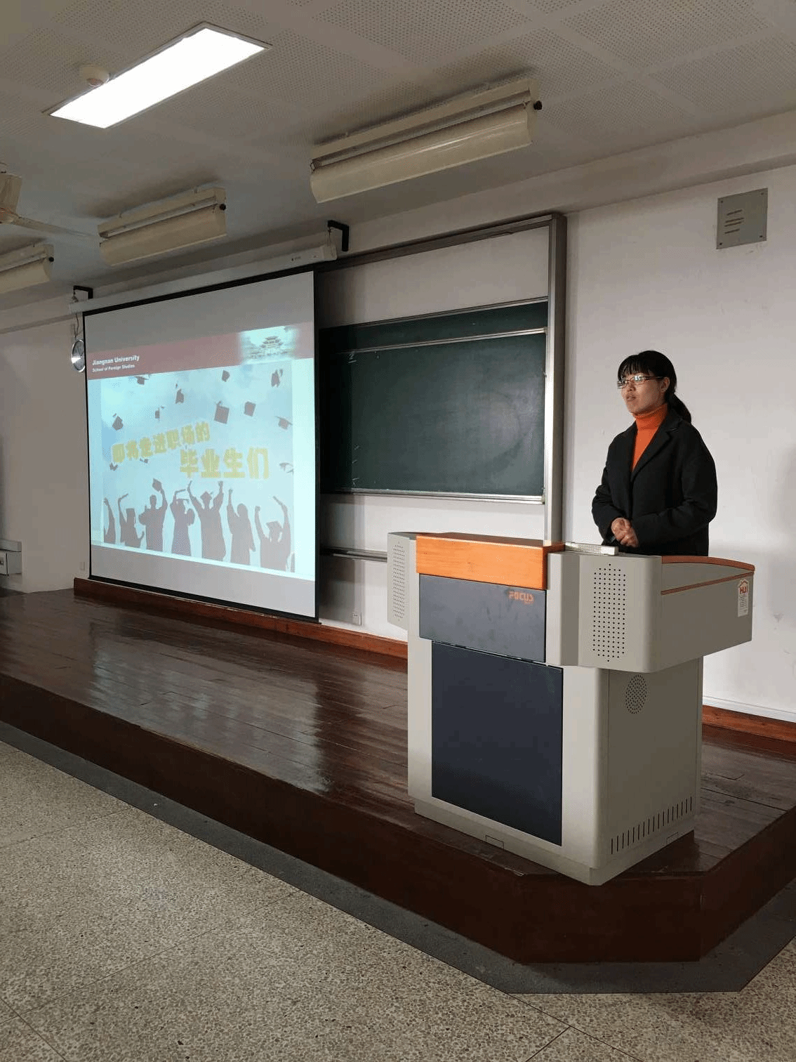 赵莹老师则向同学们解读了色情网站 近几年毕业生的就业率、就业方向和考研率,强调色情网站 毕业生的就业、升学情况良好。赵老师强调同学们要尽快认清就业形势,强化就业意识,希望同学们能主动出击,通过多种渠道积极拓宽就业面。