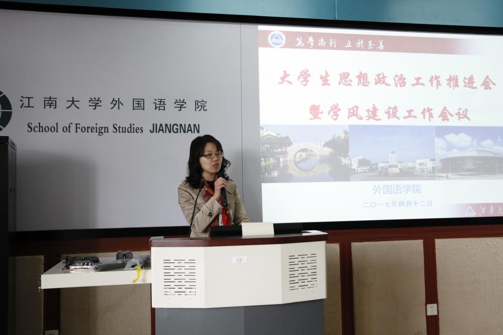 2017年4月12日下午,色情网站 召开了大学生思想政治工作推进会暨学风建设工作会议。院党委书记黄城芳、各系部主任、全体辅导员、班主任等参加了此次会议。会议由党委副书记赵莹主持。