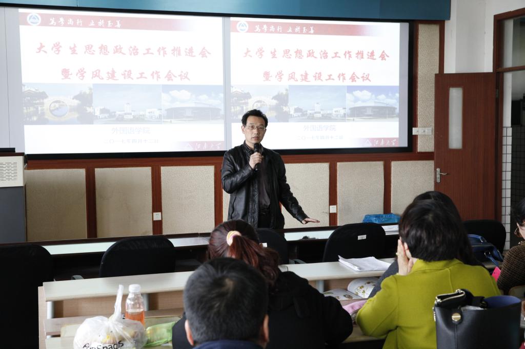 会议伊始,黄城芳书记组织学习了习近平总书记在全国高校思想政治工作会议上的讲话,传达了学校党委思想政治工作会议精神。会议要求广大老师认真学习和思考习近平总书记提出的“高校思想政治工作关系高校培养什么样的人、如何培养人以及为谁培养人”这个根本问题,坚持把立德树人作为中心环节,把思想政治工作贯穿教育教学全过程,实现全程育人、全方位育人。