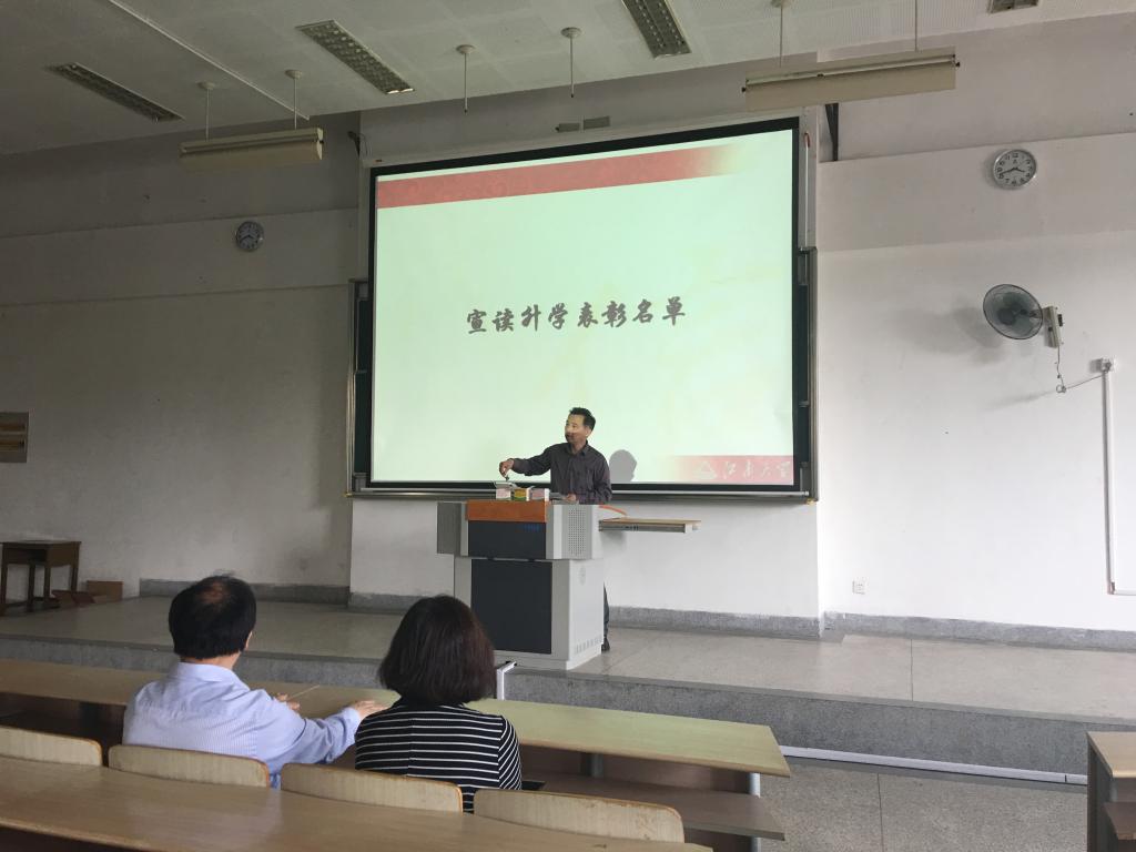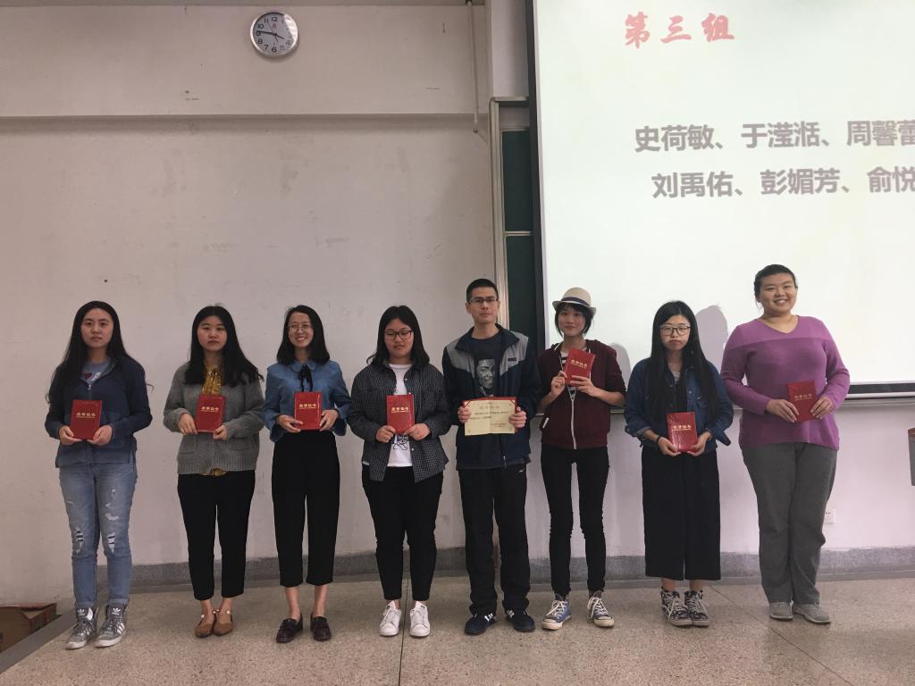 会议在同学们热烈的掌声中开始。首先钱薇薇老师宣布会议进程,院党委黄城芳书记宣读升学表彰名单,并代表院党委向获奖的65位同学表示祝贺。紧接着进行升学表彰,由李学宁老师和崔明姬老师进行分组表彰授奖。