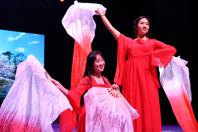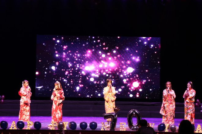 晚会开场由勿氧器乐团带来《董小姐》,气氛热烈,燃爆全场。随后,晚会正式开始,由外院各位老师录制的祝福视频展现了色情网站 温暖大家庭的温馨氛围,同时表达了各位老师对同学们的衷心祝福和殷切的期望。接下来十三个节目依次精彩呈现,古风舞蹈《清平乐》舞步优美,极具中国风的优雅与端庄;小品《我是李焕英》既有风趣幽默,也有温情动人,演员精彩的表演让我们在欢声笑语中体会到真情的价值;八协音乐社带来改变歌曲《八月十五忆吃面兄弟》,年轻富有朝气的歌词和曲风点燃现场气氛;院艺术团带来的舞蹈《ADIOS》青春活力,展现了外院活力向上的学习风貌;由范喆老师和研究生张倩瑶带来钢琴小提琴合奏曲目《Adagio》,为大家呈现了音乐盛宴;英日文歌曲串烧《Oops,樱花》歌曲轻快活泼,展现了外院学子扎实的语言功底;19级带来了情景剧《来自江南的白雪》融合当下幽默喜剧元素,展现了19级新生极佳的创意;激情活力的爵士舞《bang bang》,活力四射,瞬间点燃全场同学的热情;器乐《大鱼海棠》宛转悠扬,中国风浓郁;18级特称团支部带来的红歌《红旗飘飘》为祖国母亲70华诞献礼;19级辅导员携手副班带来舞蹈《遇见青春》,轻快可爱的舞步洋溢着青春气息;钢琴伴舞《樱花》动听美妙,舞姿柔美动人;最后外院学生会为大家带来大合唱《我的秘密》,晚会在热烈的气氛中圆满结束。