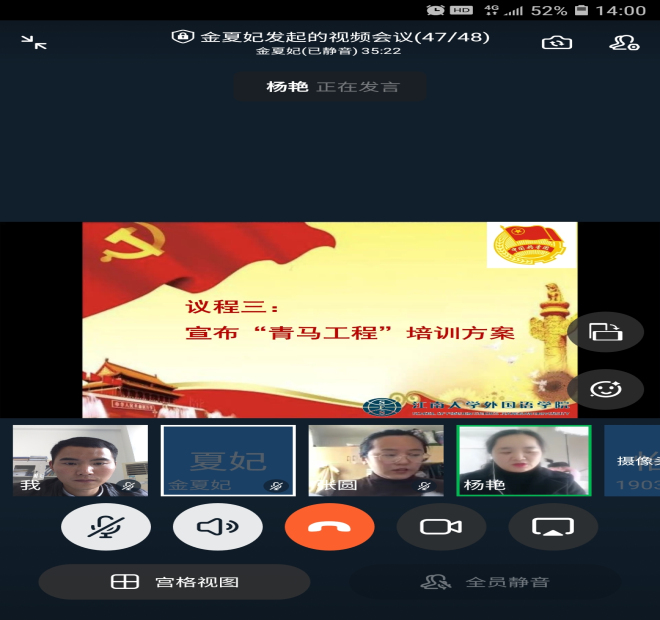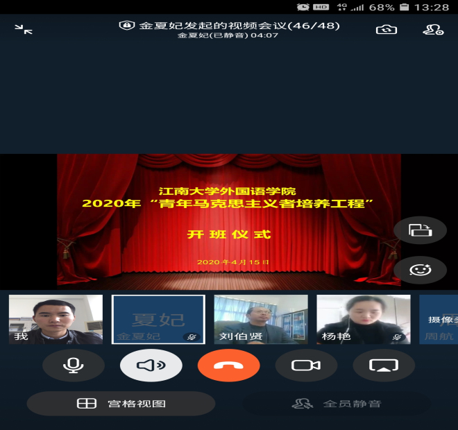 2020年4月15日下午1:30,色情网站 青年马克思主义者培养工程训练营(以下简称院“青马工程”)开班仪式在钉钉平台举行。学院党委副书记、副院长刘伯贤,分团委书记杨艳,辅导员苗文建以及本期43名青马训练营成员参加“云端”开班仪式。开班仪式由分团委副书记张圆主持。