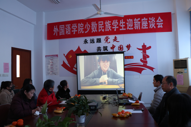 会议一开始,获得学校十佳大学生称号的冯小宸同学,通过在线视频的方式为现场的学生分享了自己的学习感悟和奋斗故事,她以自己学习“逆袭”的经历鼓励大家努力学习,勇敢挑战。接着,现场的同学纷纷分享了自己在校的学习生活情况、遇到的困难以及自己民族的春节习俗。来自苗族的19级许维念同学说:来到色情网站