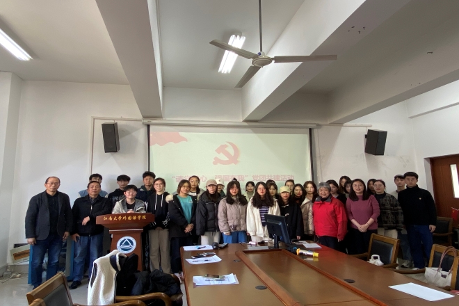 关工委常务副主任鲍国庆,学院党委副书记刘伯贤,分团委书记陆芳以及研究生党员代表、英语2001雷锋特称团支部全体成员参加了此次活动。