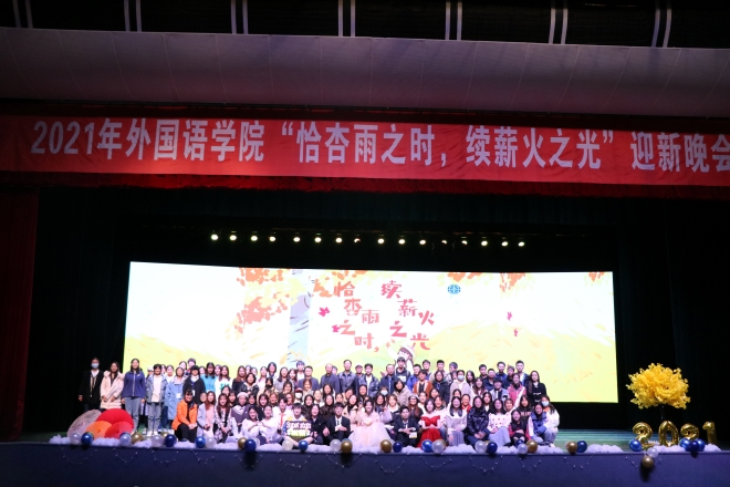 2021年迎新晚会在文浩馆如期举行。学院党委书记史志洪、院长方文开、党委副书记刘伯贤、副院长顾琦一、副院长朱义华、英语系主任孙志祥、日语系主任崔明姬、分团委书记陆芳、班主任及辅导员出席迎新晚会。本次迎新晚会由上海链家企业赞助,学院各年级学生热情参与,师生同乐,欢聚一堂。