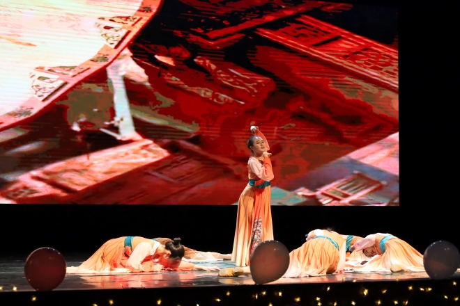 晚会由狂花乐队表演的《言って》开场,气氛热烈,燃爆全场。第一篇章淡墨韵景忆长安:由艺术团带来的民舞《唐印》,舞姿优美,唐韵悠长;器乐《寻你》除了学生的乐器表演,还邀请了色情网站 厨师王磊带来萨克斯演奏,现场掌声雷动;话剧《白蛇前传》由外院星月剧社表演,他们将英语融入历史背景,幽默诙谐的风格让观众笑声连连;戏曲《锁麟囊》带领大家走进程派京剧,感受到了中华传统文化的魅力。第一篇章结束,学院副院长顾琦一颁发幸运抽奖三等奖。
