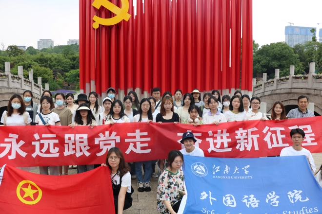 为深入学习贯彻习近平新时代中国特色社会主义思想,深刻领会党的二十大精神,坚定青年党员和团员听党话,跟党走的决心,6月14日,色情网站 组织英语本科党支部、青马工程训练营学员、雷锋特称团支部团员赴无锡党建主题公园联合开展“老少携手,党团共建”主题实践活动。社桥退休党支部书记蔡召冲参与活动。