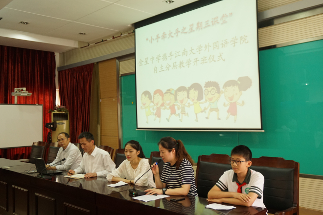 志愿者们表达了欢迎与感谢。同时,希望即将被帮扶的学生能够通过星期三课堂学习大哥哥大姐姐们勤奋学习的态度和持之以恒的毅力,抓住这个机会,扬长避短,学有所进。院副书记刘伯贤则表达了对金星中学尊重学生个体差异、有的放矢进行有差别教学的“自主分层教学”理念的肯定,激励金星学子在“星期三课堂”的学习中开阔眼界,克服困难,努力奋进,同时希望志愿者们能够传递知识,传递正能量。随后,青协志愿者代表发言,表示将坚持到校送教,践行志愿服务精神,争做新时代青年榜样。金星学生代表也表示,将以此次机会为契机,牵着江大哥哥姐姐的大手,端正学习态度,提升学习动力,调整学习方法。