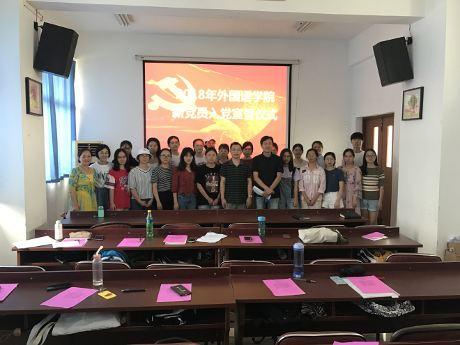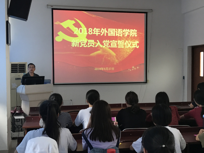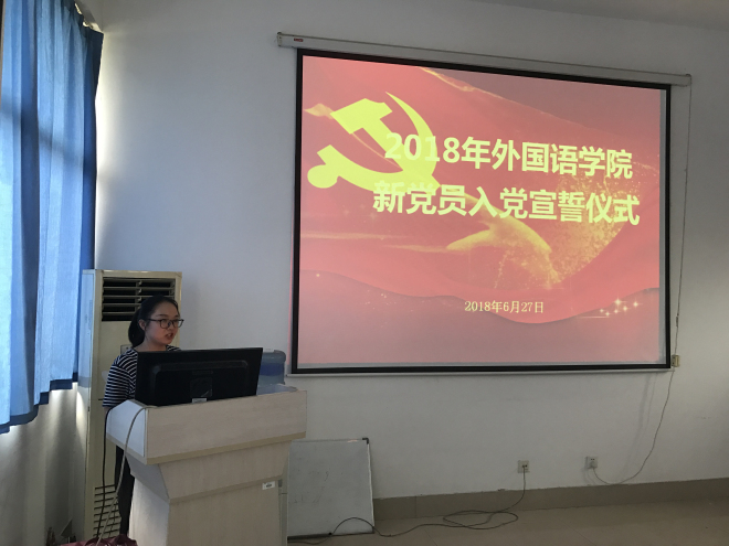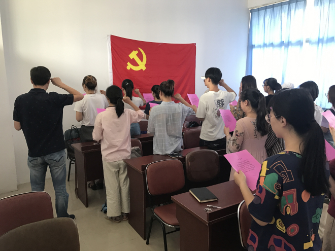 在A433举行2018年新党员入党宣誓仪式。参加本次入党宣誓仪式的有院党委书记黄城芳、党委秘书许广玉、分团委书记杨艳、辅导员张圆、黄颖以及2018年全体新党员,仪式由杨艳主持。