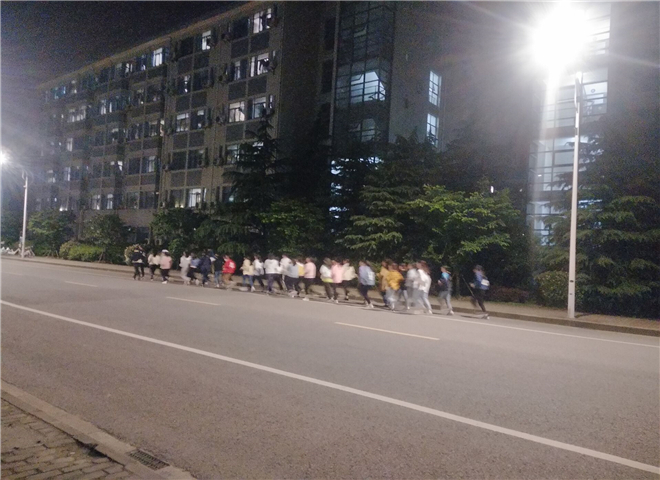 “增强心动力训练营”与2018级八个团支部共同开展“五四青年节荧光夜跑活动”。青年学子相约在五月每周一三日的夜晚,手举国旗和共青团团旗,在江大春暖花开的校园完成4.1公里的奔跑。同学们高唱《我和我的祖国》等爱国歌曲,在校园中形成一片红色海洋。
