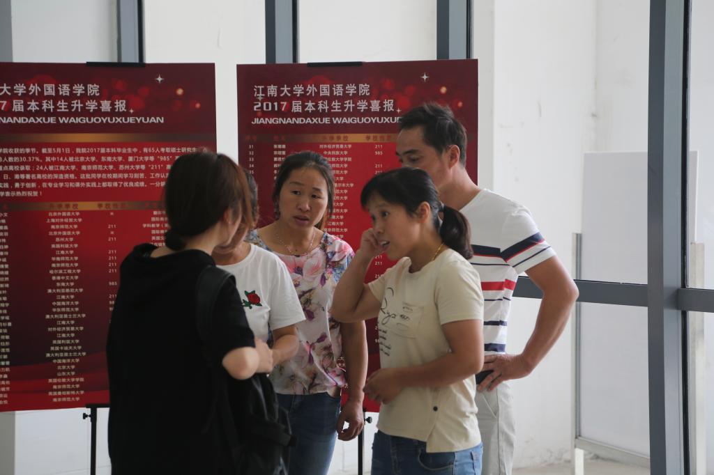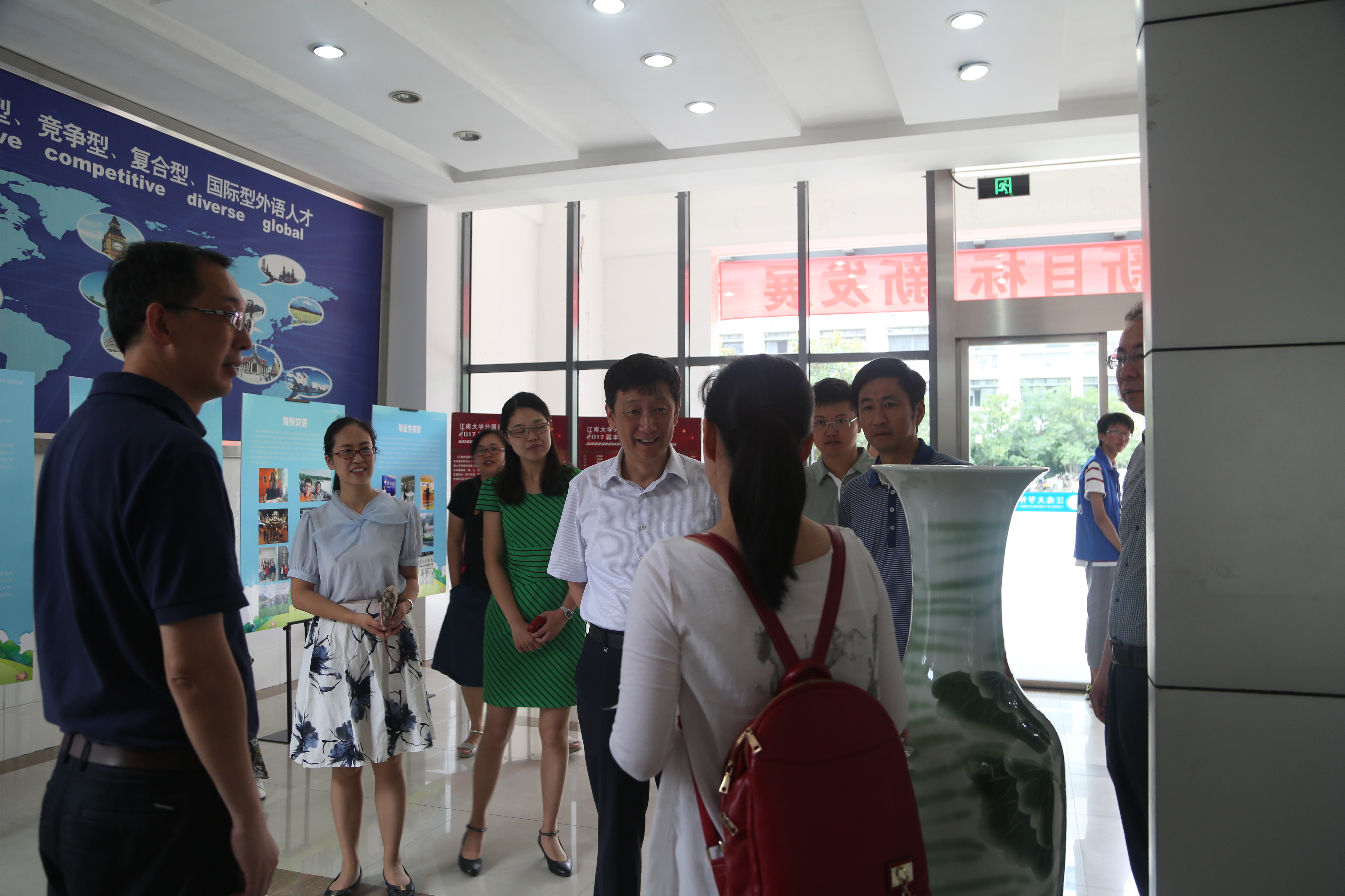 院长龚晓斌、院党委副书记赵莹等学院领导的陪同下视察了外院迎新工作人员的工作情况并与来报到的新生进行了简单交流。