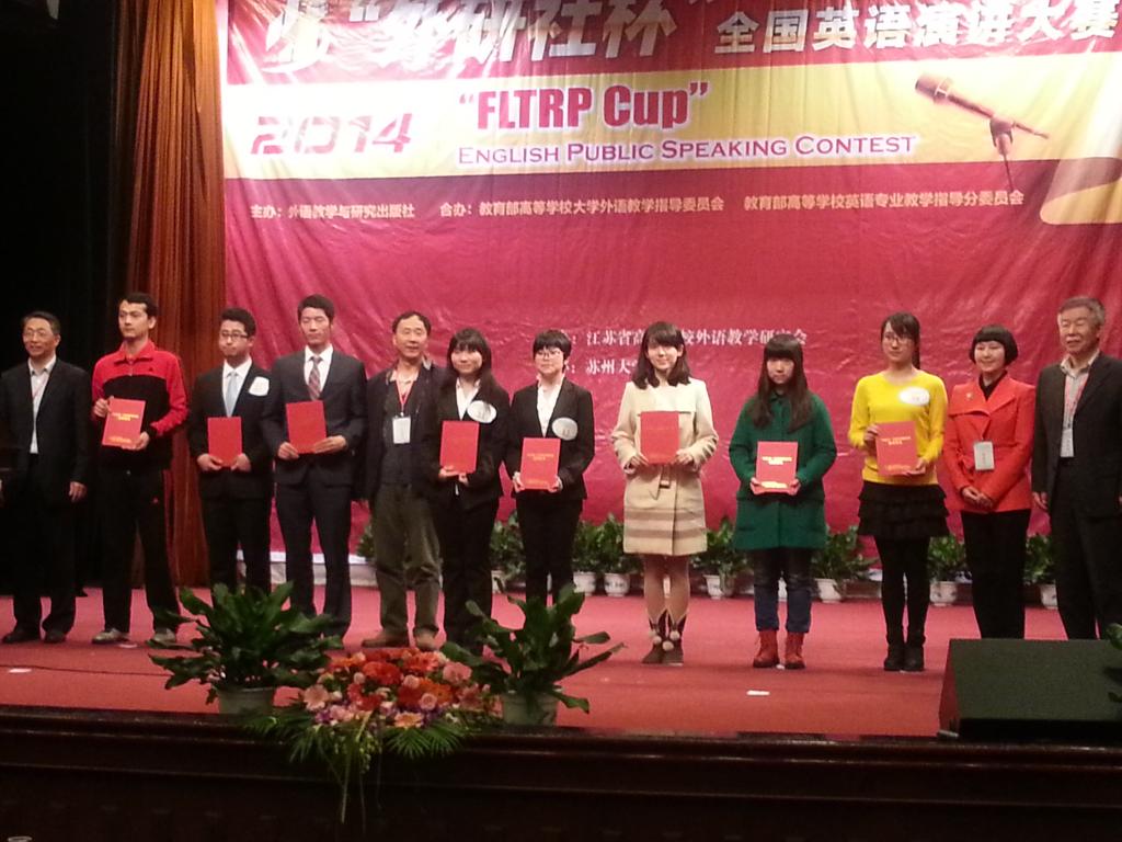 承办。来自我校、南京大学、东南大学、苏州大学等省内75所高校与独立学院的156名选手参加了此次大赛,通过定题演讲、抽题即兴演讲、现场回答问题等几个环节的比拼,决出最后的名次。我校英语1105班何磊静同学和英语1201班孙培培同学荣获二等奖,英语1305班的窦君怡同学荣获三等奖。