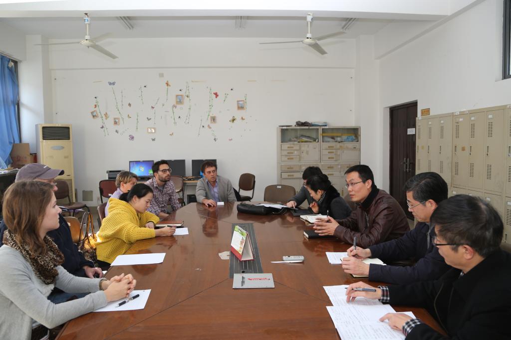 的外籍教师齐聚系办公室进行座谈,就开学至今的教学体验与感悟、学生反馈和即将到来的期末阶段注意事项等进行了传达与交流。座谈会由副院长李健雪教授与英语系主任孙志祥教授先后主持,学校国际交流处姚欣副处长以及分管外国专家工作的孙梦黎老师也应邀参加了本次活动。
