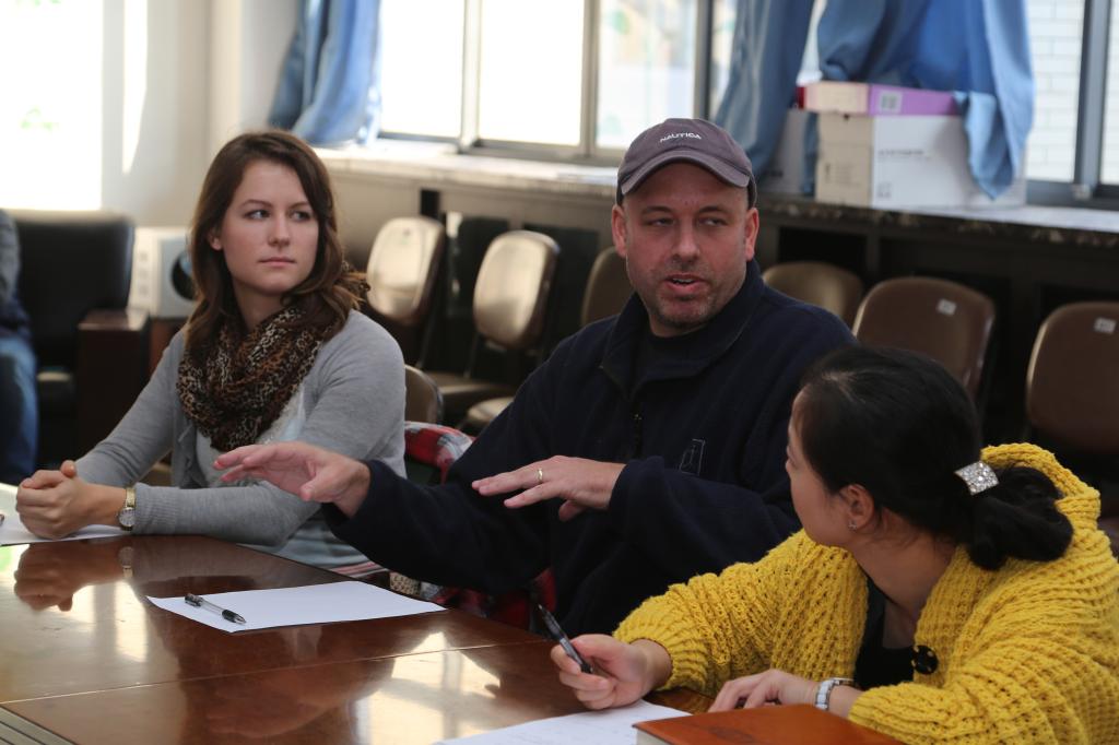 接着与会的五位外籍教师分别介绍了自己所教授的科目和平时课堂采取的针对不同课程的教学方法、教学感悟。这种轮流介绍为定期交流的外教们提供了一个相互学习、相互启发的良机,对他们日后的教学工作大有裨益。在这一过程中,有外教对目前采用的英语专业口语教材提出了中肯的意见和建议,这也为将来共同编写色情网站