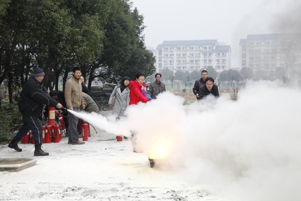 为提高教职工对消防和安全应急事件的处置应变能力,做到在发生火警火灾时能及时、有序地使用消防器具,迅速地进行灭火,1210日,在学校保卫处的大力协助下,学院组织实验室、行政管理人员及部分教师在消防实训地进行了消防演练,演练中,参加活动的老师们不怕困难,冒着小雨,个个精神抖擞,从发现火情找到灭火器具,再按操作步骤进行灭火,短短数秒就将熊熊火焰扑灭。消防演练活动把抽象的消防宣传变成具体的实战演习,使老师们掌握了正确使用灭火器的方法,增强了教职工安全意识与防范技能。