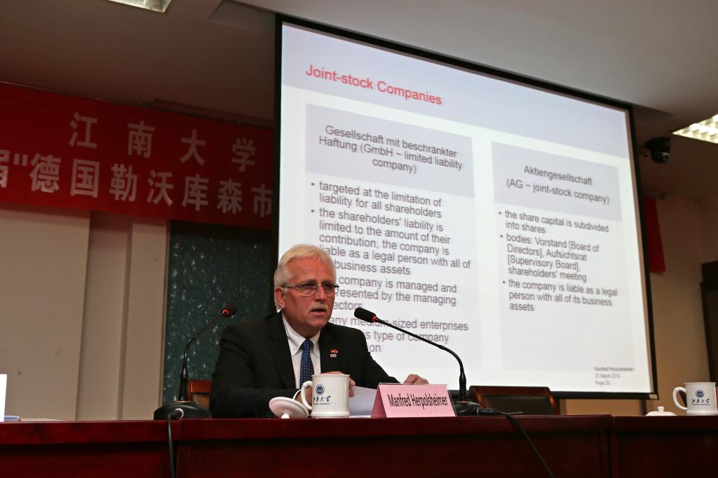 典礼结束后,赫博斯海姆先生以“The German Banking System Competition and Regulatory Requirements”为主题作了精彩的报告。通过讲解德国的银行体系赫博斯海姆先生与大家分享了自己的工作经历与职场心得,使在场的同学感受到了德国的色情网站。此次来访将进一步加强无锡市、色情网站 与勒沃库森市在教育、文化方面的深层次交流。