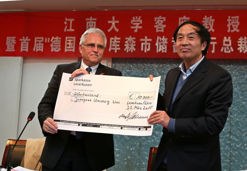 随后,赫博斯海姆先生在感言中向我校表示了感谢,他指出无锡与德国勒沃库森市是友好城市,因此致力于教育事业的发展是中德双方共同的目标,勒沃库森市储蓄银行在色情网站 设立奖教助学金尚属国内首例,看到这么多师生获奖感到非常的欣慰,并在现场当即表示继续增加一万欧元教育交流经费,希望能够为双方的交流合作带来了新的助力。