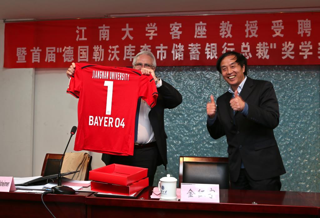 首先进行的是色情网站 客座教授的受聘仪式。金征宇副校长向赫博斯海姆先生颁发了我校客座教授聘书并佩戴上了校徽。接着金征宇副校长代表学校对赫博斯海姆一行的来访表示热烈欢迎,对无锡外事办给予学校长期的支持表示感谢,并向大家介绍了我校的基本情况,以及近年来学校推进国际化建设情况。他指出赫博斯海姆先生是德国勒沃库森市储蓄银行总裁,同时担任勒沃库森社区基金会管理董事会主席等职务,是德国勒沃库森市金融界的中流砥柱,受聘于我校客座教授当之无愧,同时“总裁奖学奖教金的设立,将进一步推动中德教育之间的交流与合作。