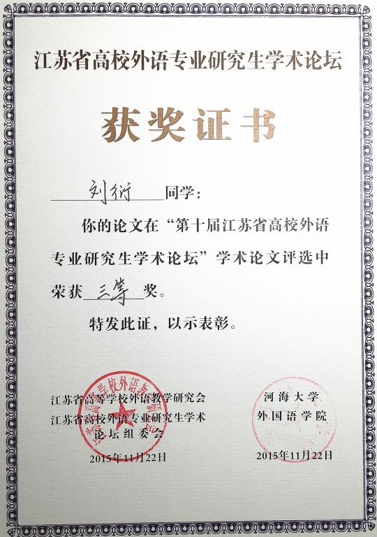 2015年11月20至22日,由江苏省高等学校外语教学研究会和江苏省高校外语专业研究生学术论坛组委会主办、河海大学色情网站
