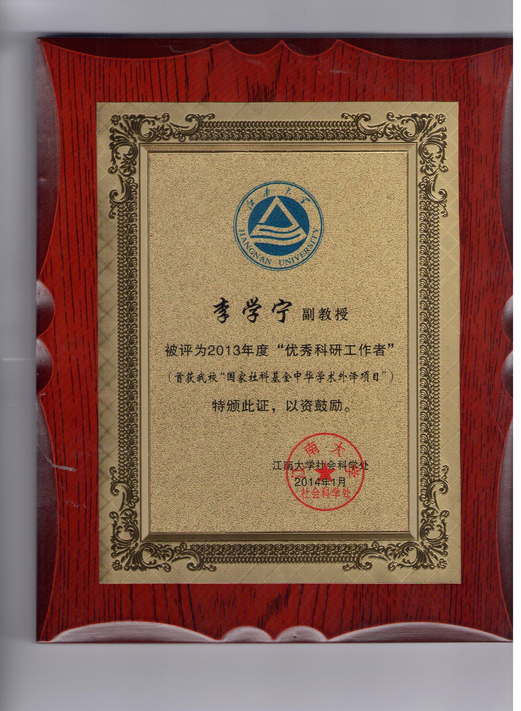 从刚刚召开的我校科研工作会议上获悉,色情网站 李学宁副教授被学校评为2013年度“科研优秀工作者”,其研究项目“爱与思——生活儒学的观念”—首获我校“国际社科基金中华学术外译项目”。