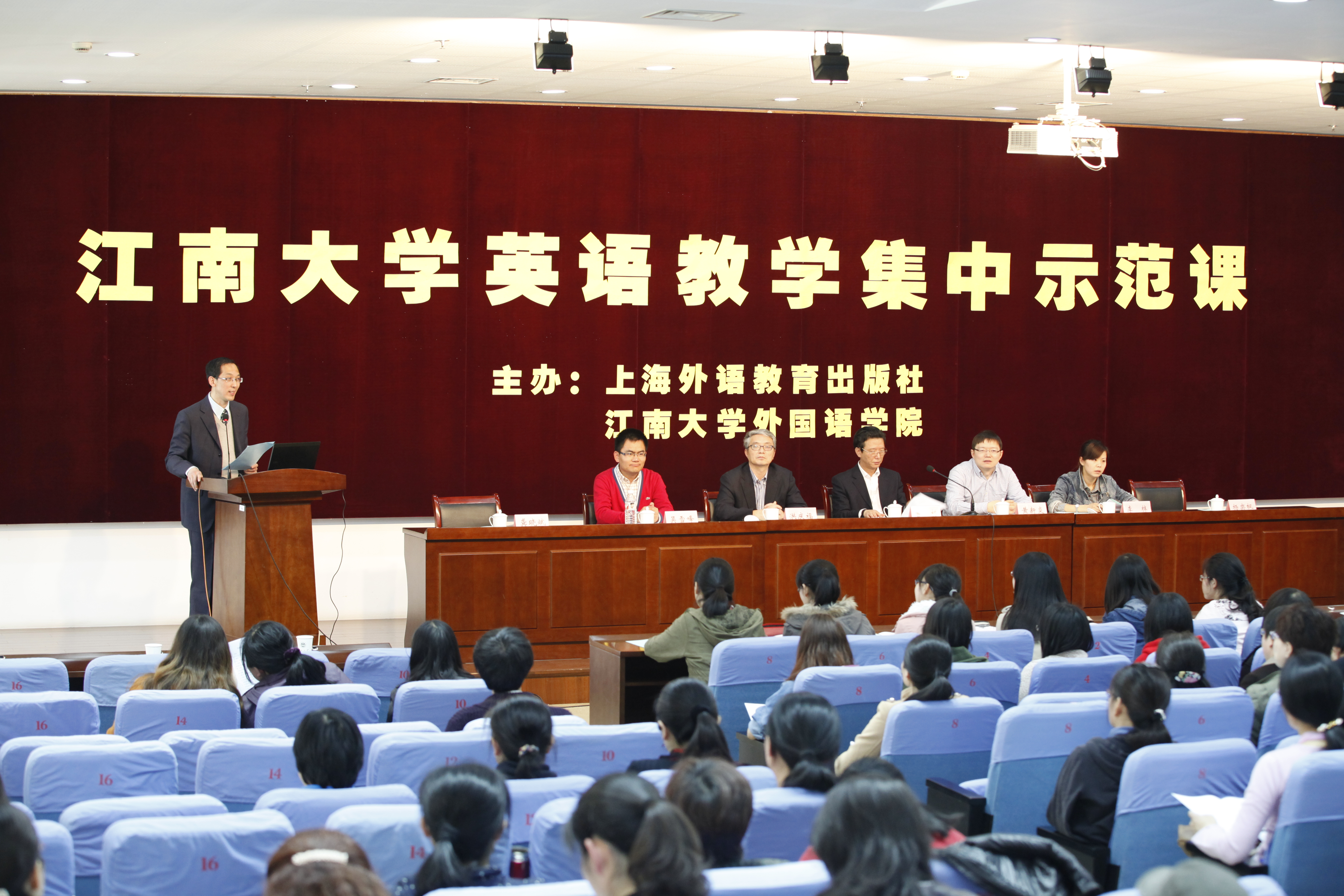 院长洪庆福教授、活动赞助方代表上海外语教育出版社江苏公司经理黄新炎先生、示范课教师、色情网站