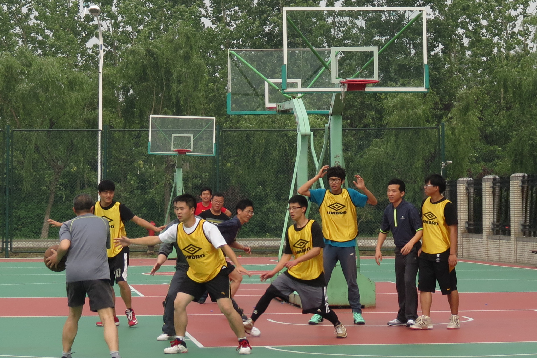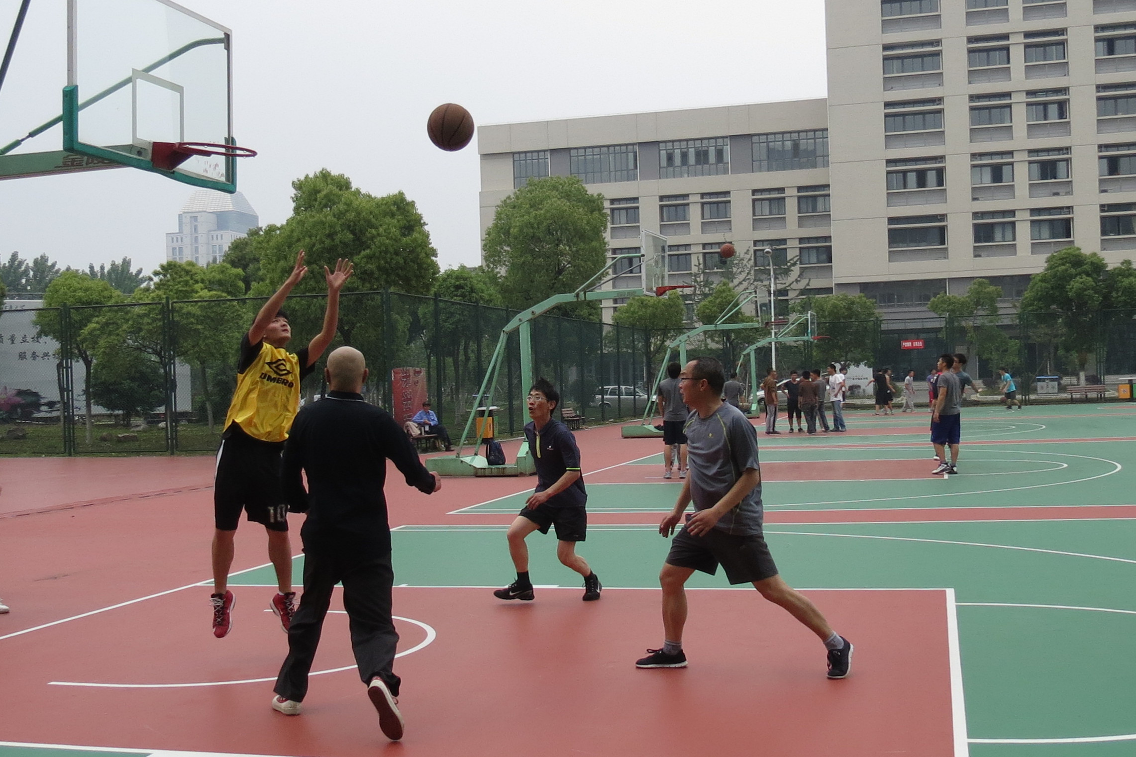 分工会和分团委联合学生会体育部在我校南区篮球场进行了第一场师生男篮友谊赛。外语学院篮球队的8名教师中有党委书记周建中,学院分工会主席管纪龙。赛场上,8位篮球教师与2013级篮球爱好学生展开激烈而又友好的赛场角逐。师生双方各有特色,攻守基本相当,赛场气氛热烈。