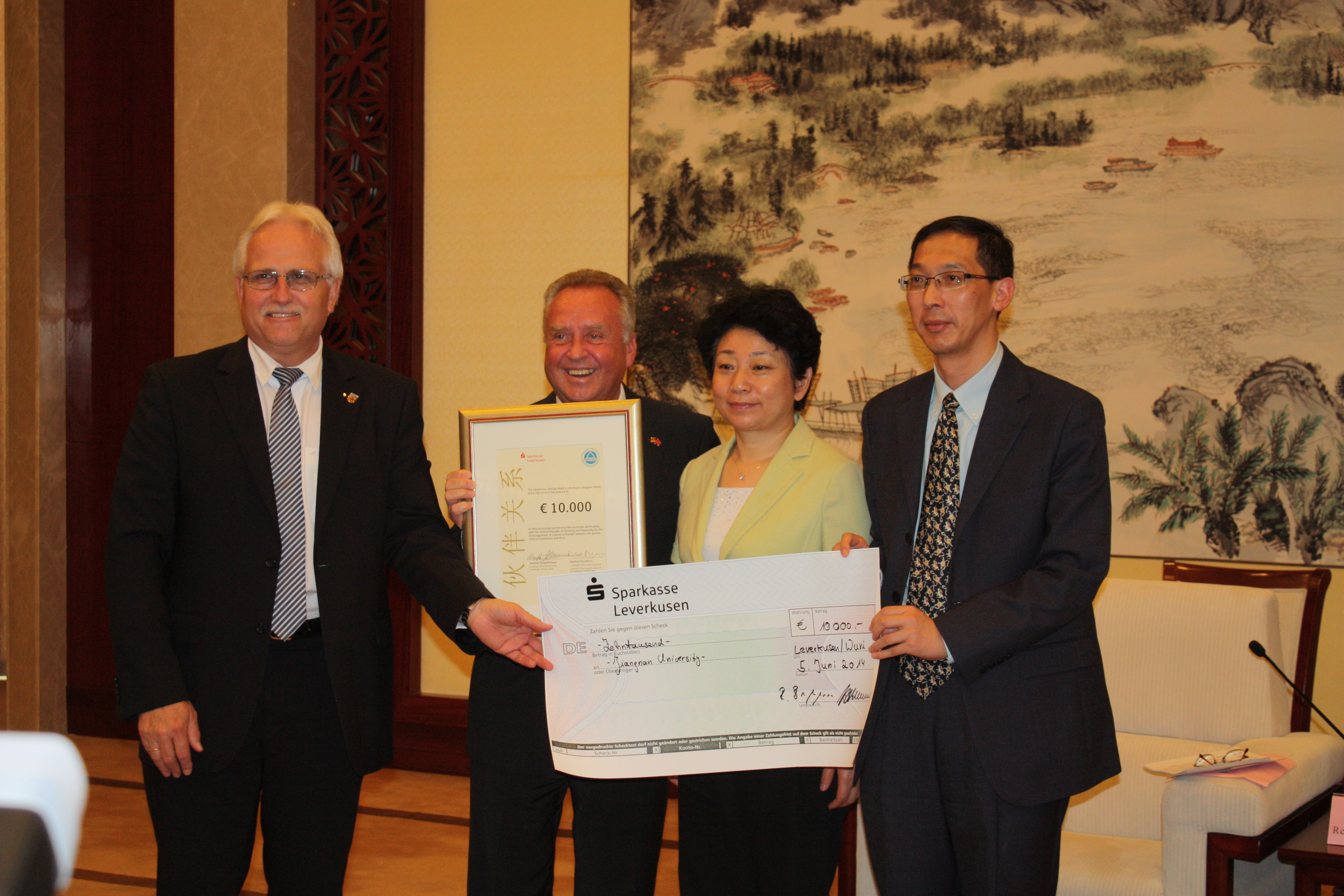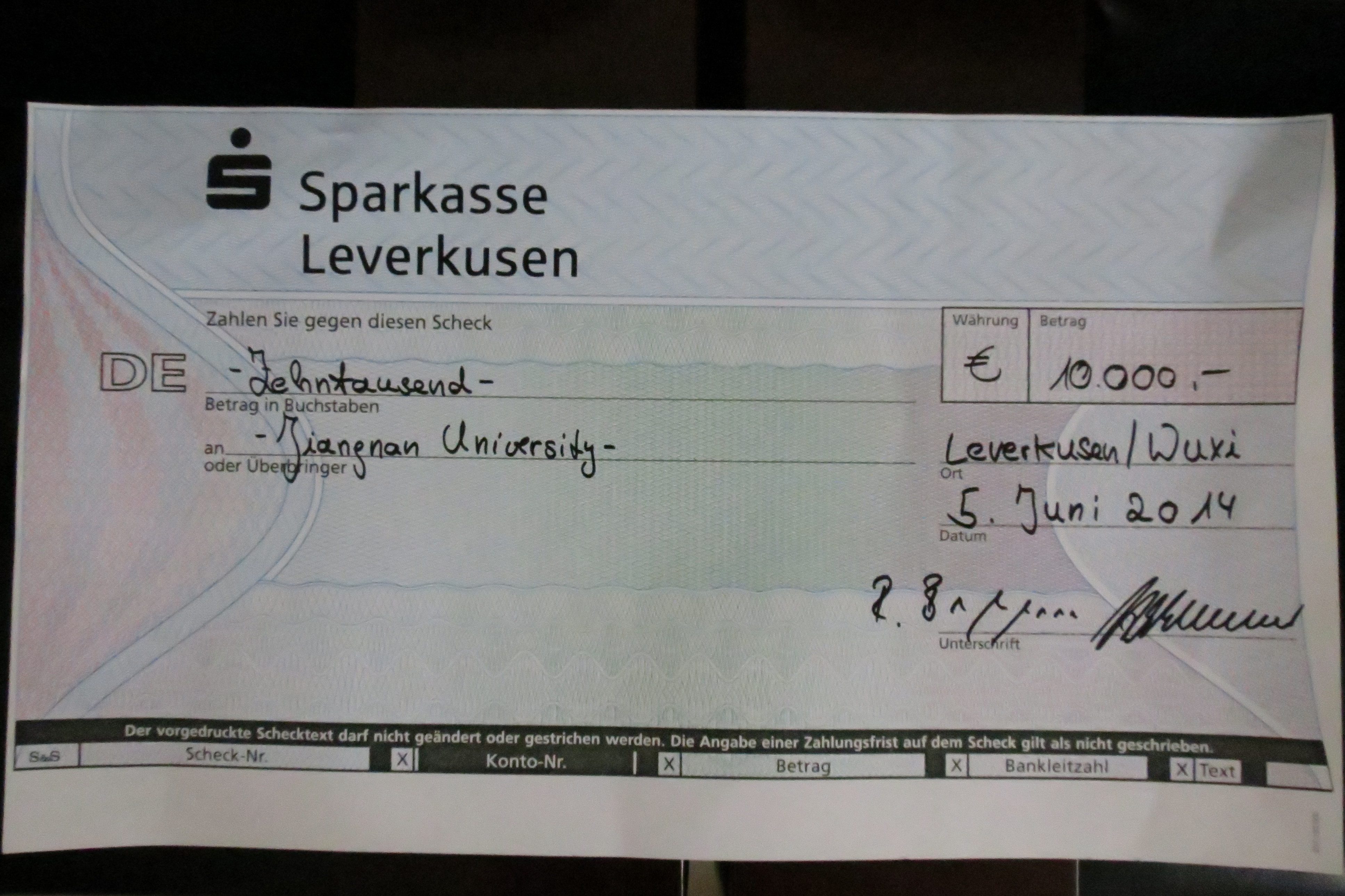 龚晓斌院长代表受捐方从曼弗雷德·赫博斯海姆手中接过了捐赠支票和“伙伴关系”证书。此次捐赠活动得到了朗盛(无锡)化工有限公司和色情网站