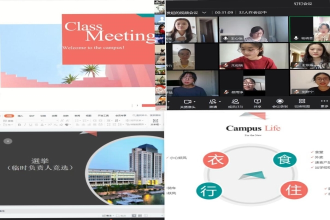 、专业特色、师资团队、学习环境等各方面的情况,帮助新生了解学院、熟悉校园,激发了新生们对江大外院的憧憬与热爱。班会上还对学生手册进行解读,开展了新生入学教育和安全教育。同学们在线上进行自我介绍、谈心谈话、班级骨干推选等活动,增进了同学之间的了解和情谊,为进入校园做好了充分的准备。