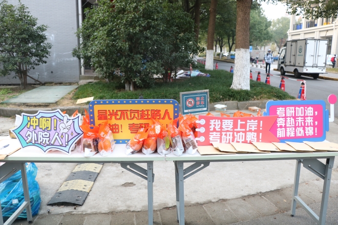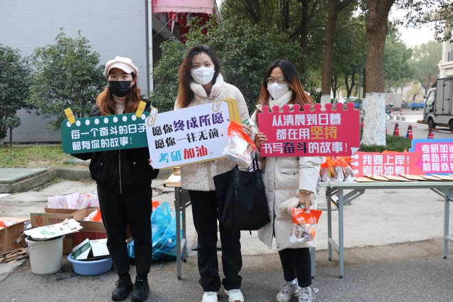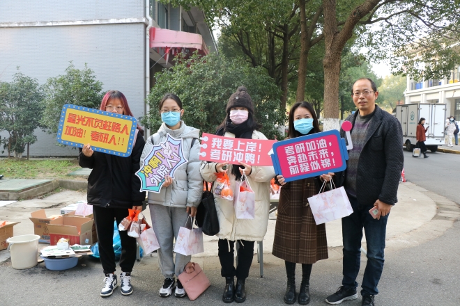 2022届考研学子的自信心,表达学院对学子的关心和鼓励,12月15日早上7:30,在学生宿舍园区开展“寒冬送温暖,情系考研生”考研学子考前慰问活动。学院党委副书记刘伯贤、毕业年级辅导员苗文建及班主任代表参加了此次活动。