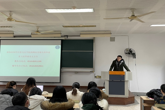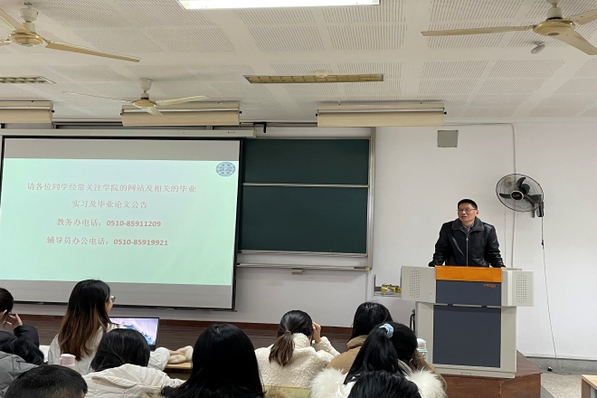 首先,学院党委副书记刘伯贤围绕“实习安排”、“注意事项”以及“就业工作”进行介绍。刘书记表示:大家要充分重视实习实践环节,借助实习的机会了解行业、岗位,为自己的就业最好准备,为后期的职业发展打下基础。随后,日语系副主任管纪龙老师从“诚信教育”、“实习安全”、“实习成长”三个方面进行介绍,英语系副主任杨昊老师从“就业情况”、“论文安排”等方面提醒学生各项注意事项。最后,学院副院长顾琦一动员讲话。顾院长表示:毕业实习是大学学习阶段重要的实践性教学环节之一,是理论与实践相结合的重要方式。希望大家在理想与现实之间明确自身的定位,及时调整心态,从细节处提升自己。最后顾院长提醒大家要及时和指导老师汇报实习情况,及时跟进论文撰写等进度。