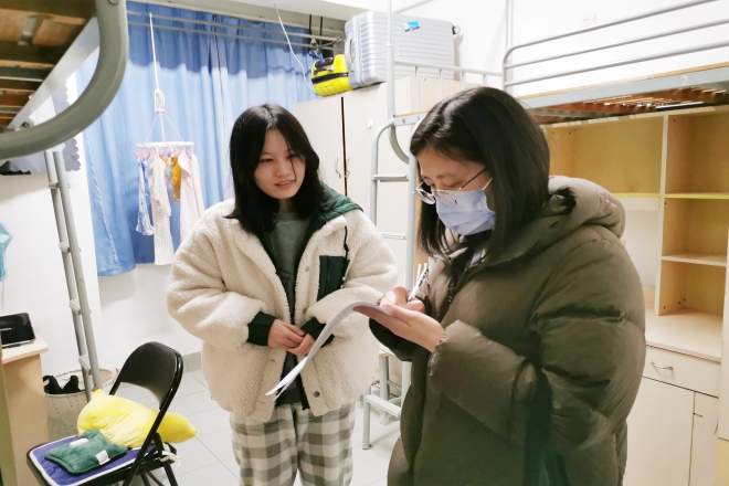 高度重视疫情防控工作,严格落实学校疫情防控的各项要求。通过走访宿舍听取学生心声,学院领导和老师进一步了解了返校学生的情况以及实际需求,为接下来的教学工作与疫情防控工作的稳步推进打下了良好基础。