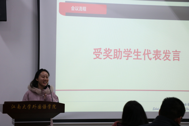 分团委书记杨艳、教师胡燕萍、江苏艾菲斯医院管理有限公司代表陆伟栋、无锡安达汽车综合性能检测有限公司代表陈志刚以及受助学生参加颁奖仪式。颁奖仪式由学院分团委副书记张圆老师主持。