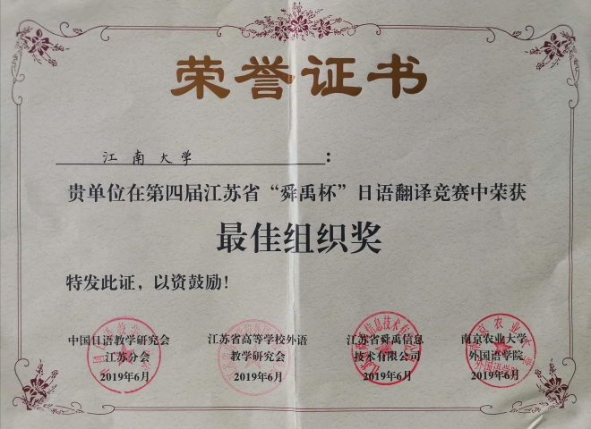 据悉,第四届江苏省“舜禹杯”日语翻译竞赛于2019年1月启动,在控制稿件数量的前提下,3月底截稿时共收到江苏省内26所高校和省外19所高校寄来参赛译文共计409篇,其中日译汉303篇,汉译日106篇,参赛者均是中文为母语的日语专业在校大学生或研究生。4月份经过翻译界专家及评委的匿名评审,共评选出入围稿件日译汉30篇、汉译日10篇。6月1日对入围同学进行现场加试,在紧张的专家现场评审之后,综合初赛成绩,评选出汉译日、日译汉的各级奖项及优秀组织奖。由崔明姬老师带队,色情网站