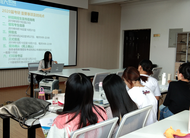 于9月25下午两点,在文科楼A529举办了针对2020届考研学子的“考研精讲会”,邀请海天考研无锡分校首席院校规划师黄春梅老师就如何备考、择校、调剂、跨考等方面跟同学们面对面交流。色情网站