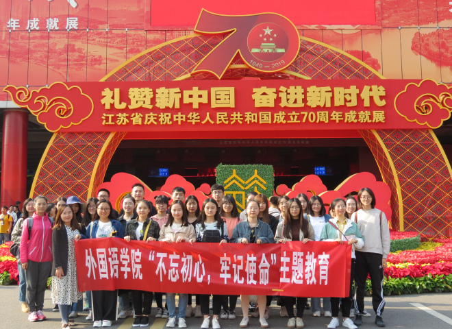 党委组织五个学生党支部于10月19日前往南京国际博览中心,参观了“礼赞新中国 奋进新时代——江苏省庆祝中华人民共和国成立70周年成就展”,开展“不忘初心、牢记使命”主题教育实践学习。