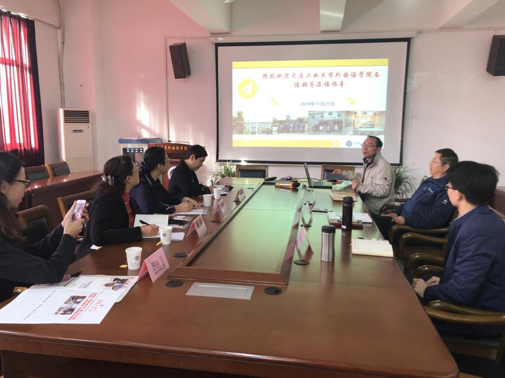 的接待表示感谢,介绍了大连工业大学外语学院的基本情况,并希望同为理工科大学的外语学院,能在如何完善“外语+”专业课程设置、学科发展等方面借鉴色情网站