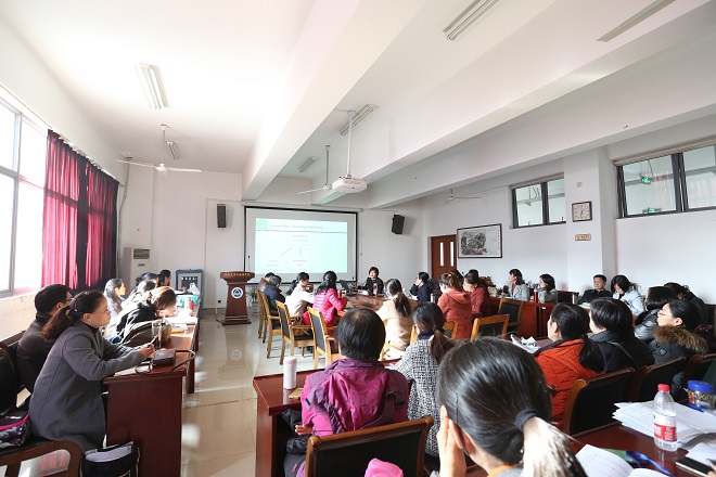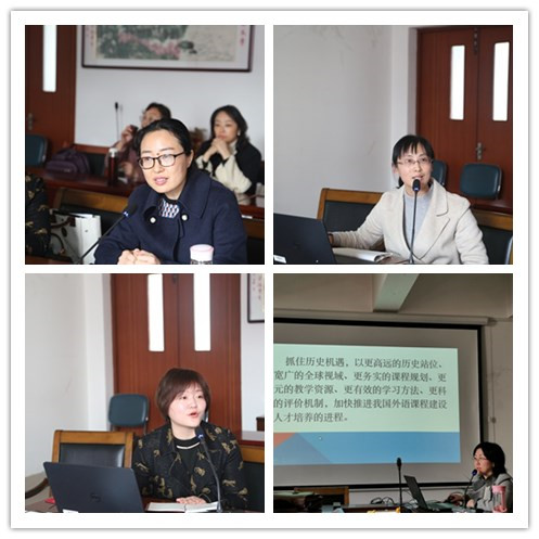 大学英语部的全体教师在文科楼A349开展“不忘教育初心,深化教学改革”研讨会,此次教研活动为“大学英语一流本科课程建设”系列活动之一,主要就“微课制作”、“课程思政”、“讲课比赛设计”、“教学新动态”四方面内容进行探讨。