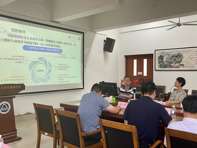 院长方文开代表学院汇报自评情况,重点围绕第一轮模拟评估反馈意见汇报了自评报告和支撑材料的改进和完善情况。
