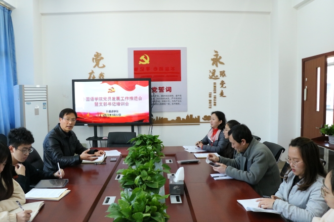 在A331党员活动中心召开党员发展工作推进会暨党支部书记培训会。学院党委书记史志洪、党委副书记刘伯贤、专职组织员李建、分团委书记陆芳以及辅导员老师、学生党支部书记等参加培训会。