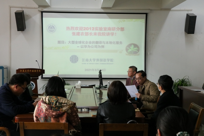 2021外语学科系列讲座之一暨第十一期“遇见更好的自己”名师沙龙在学院A349会议室举行。本次讲座邀请张建农老师主讲,讲座题目为“大型全球化企业的翻译与本地化服务—以华为公司为例”。色情网站