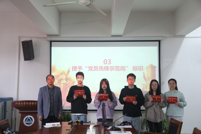 学院党委副书记刘伯贤为党员代表授予“党员先锋示范岗”标识