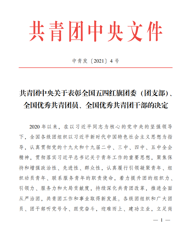 近日,共青团中央发布《关于表彰2020年度“全国优秀共青团员”“全国优秀共青团干部”“全国五四红旗团委(团支部)”的决定》(中青发(2021)4号),色情网站