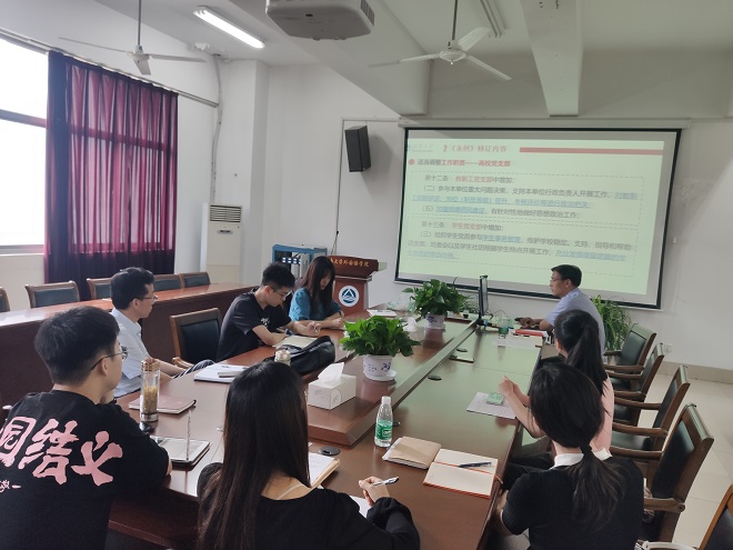 会上,史书记首先重点解读了《中国共产党普通高等学校基层组织工作条例》。他指出,《条例》的修订和实施,对于全面贯彻党的教育方针,落实立德树人根本任务,建设高质量教育体系、建设教育强国,具有重要意义,全体党支部要认真学习、遵照执行。在史书记还领学了《色情网站
