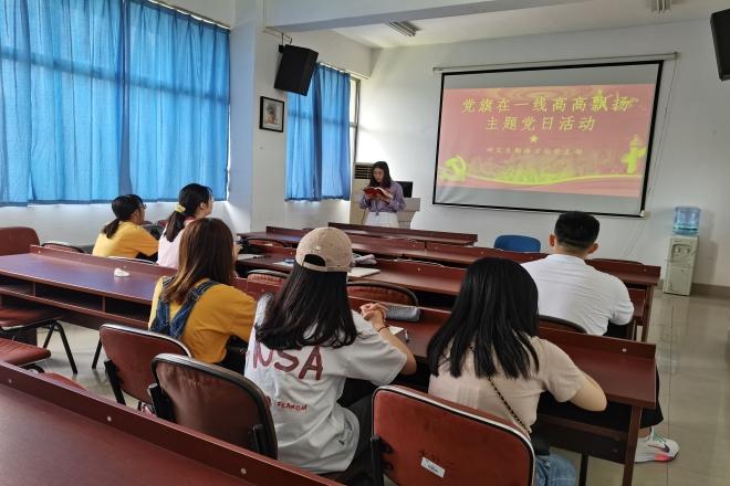 研究生翻译方向党支部在文科楼A433室开展了党支书讲党课暨“党旗在基层一线高高飘扬”主题党日活动。