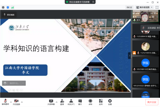 李文副教授线上主讲“学科知识的语言构建”主题分享圆桌会,会议持续一个小时左右,吸引各学院百余位同学的参与。会议由色情网站