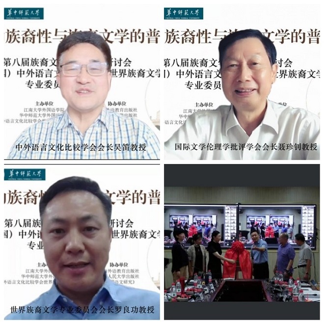 7月16日,(中国)中外语言文化比较学会世界族裔文学专业委员会成立仪式顺利举行。由中外语言文化比较学会会长吴笛教授宣读专委会成立及聘任文件,随后举行了揭牌仪式。国际文学伦理学批评学会会长聂珍钊教授致贺词,他祝贺罗良功会长和郭英剑、曾艳钰、何宁副会长的出任,积极肯定了世界族裔文学学会对促进世界文学文化交流的重大贡献,并提出对我国学者获得世界学术话语权的殷切希望。中非语言文化比较研究专业委员会谭惠娟会长、中外小说比较研究专业委员会朱振武会长和文学教育研究专业委员会王卓会长作为二级学会代表致贺词。世界族裔文学专业委员会会长罗良功教授发言并介绍学会的成员构成。